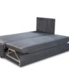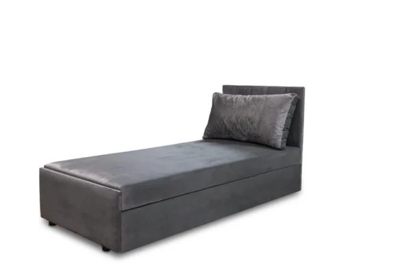 Największą zaletą łóżka jest funkcja dodatkowego spania – po rozłożeniu powierzchnia powiększa się do 160×190 cm, idealna dla gości lub większej wygody. Do łóżka dołączona jest również poduszka o wymiarach 45×90 cm, która zwiększa komfort odpoczynku. To praktyczne i eleganckie rozwiązanie, które łączy styl z funkcjonalnością.