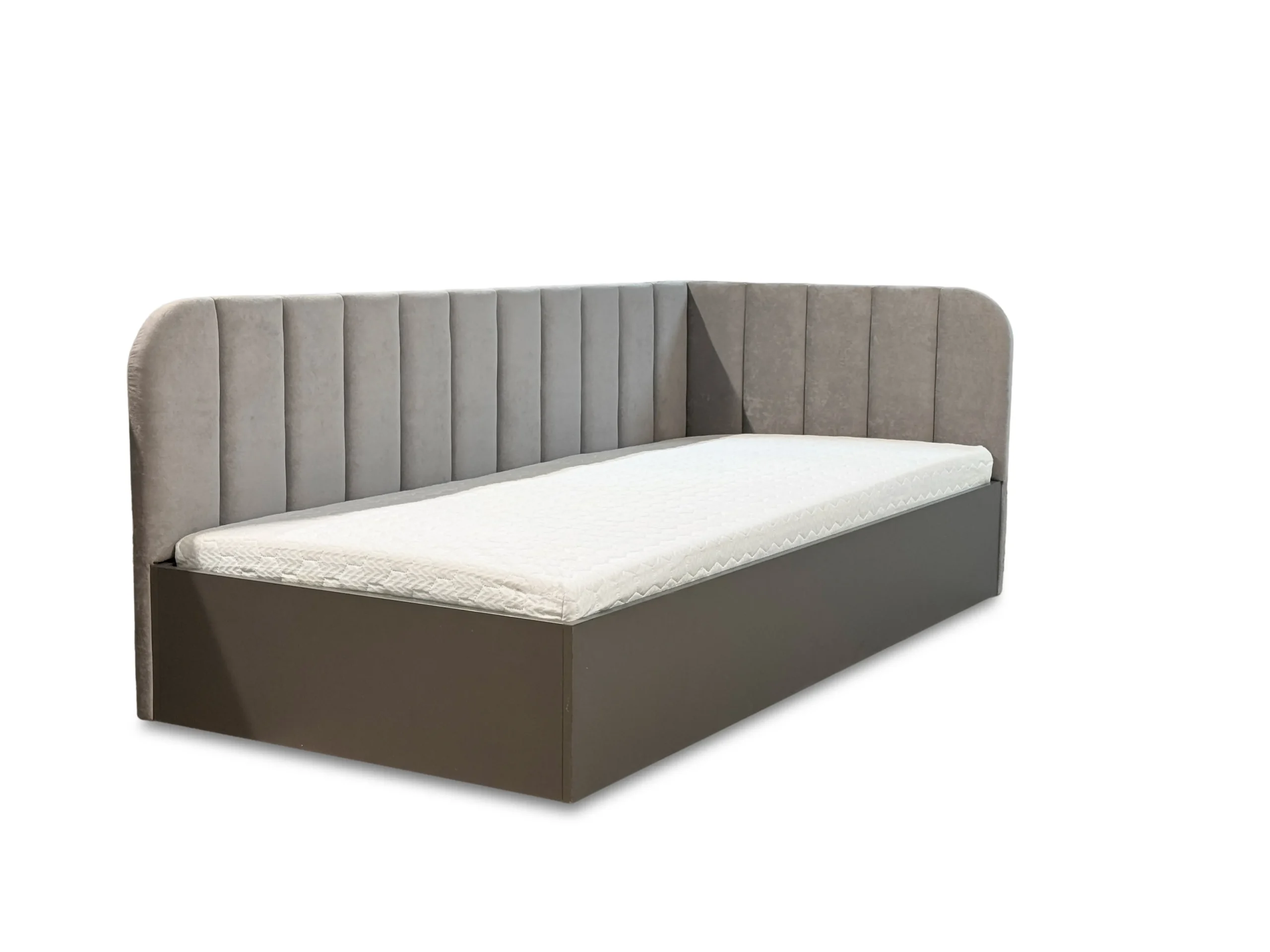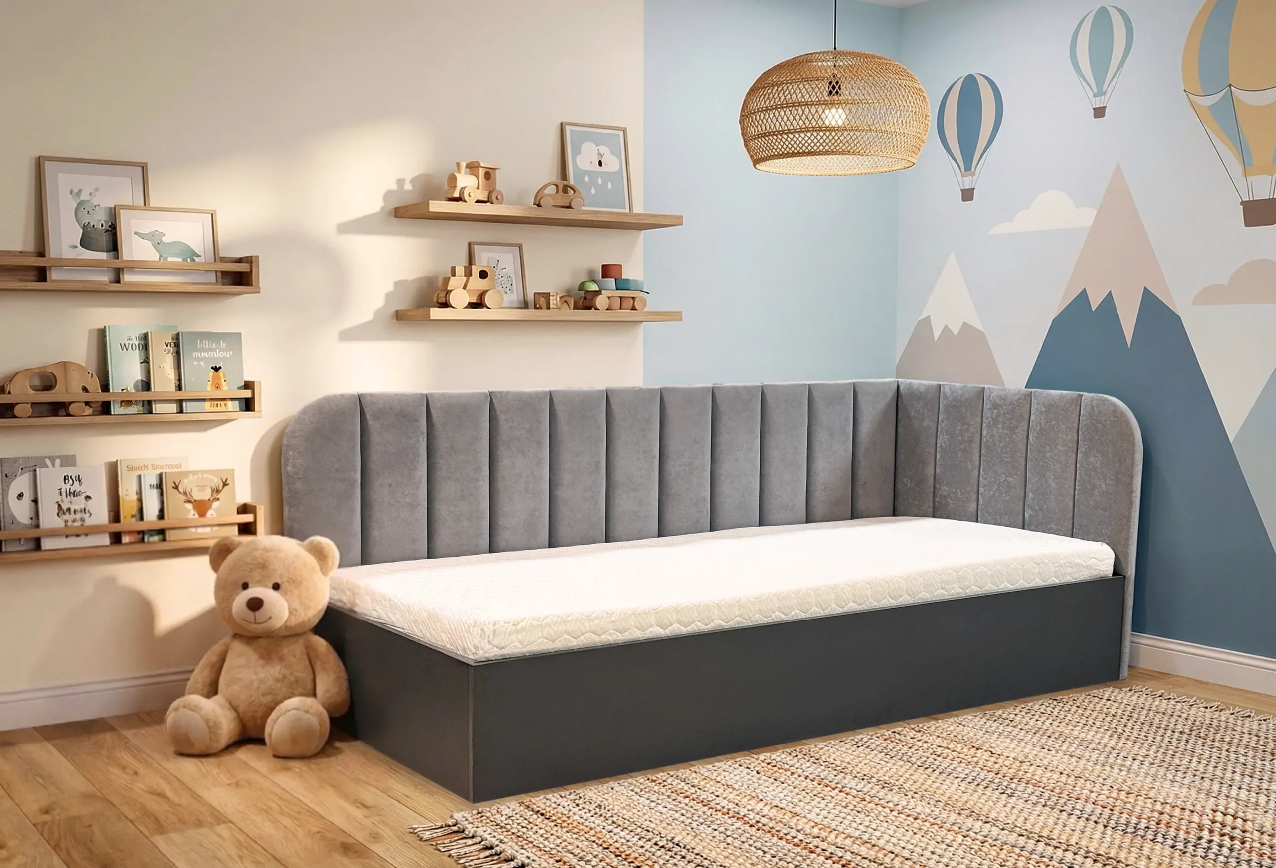 Wysokie, miękkie oparcie zapewnia wygodę podczas siedzenia, czytania czy pracy na laptopie. To rozwiązanie, które sprawia, że mebel pełni nie tylko funkcję łóżka, ale także komfortowej strefy relaksu.