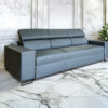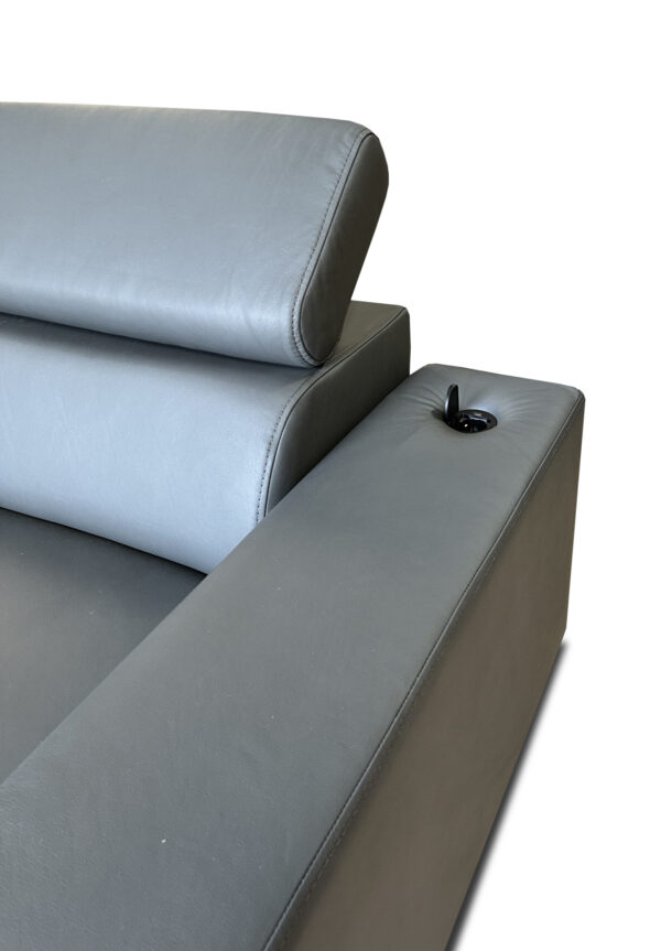 Skórzana sofa Charlie II mimo swych niewielkich rozmiarów posiada szereg funkcji między innymi: regulowane zagłówki oraz wbudowaną listwę zasilająca z gniazdem 230V.