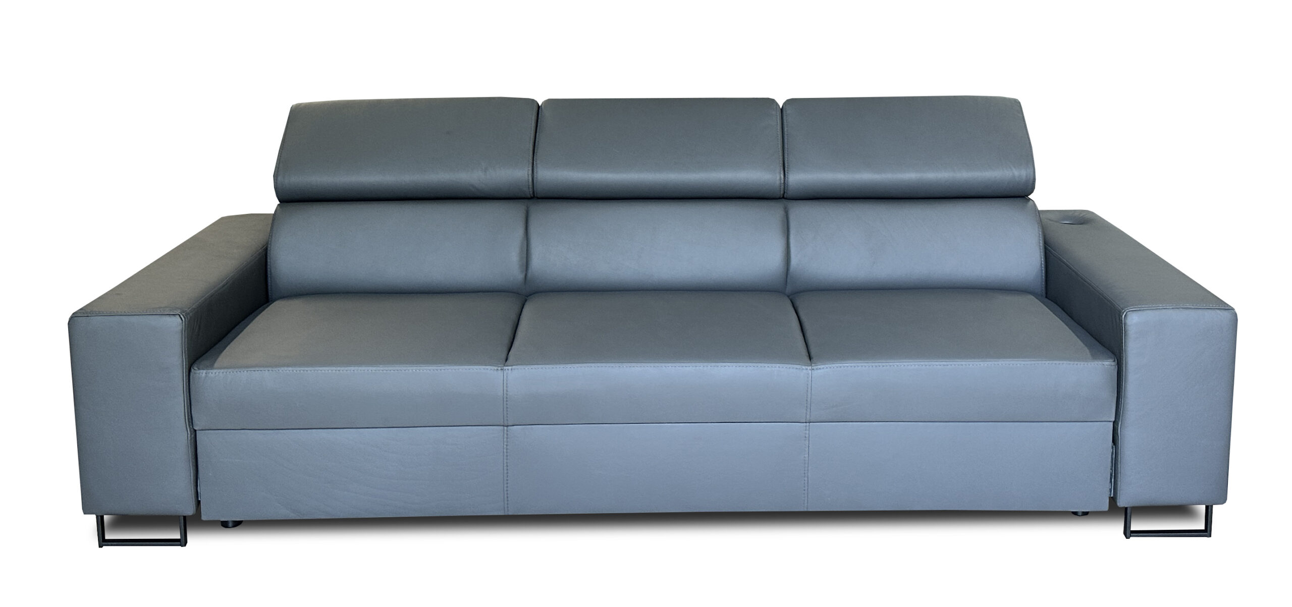 Skórzana sofa Charlie II mimo swych niewielkich rozmiarów posiada szereg funkcji między innymi: regulowane zagłówki oraz wbudowaną listwę zasilająca z gniazdem 230V.