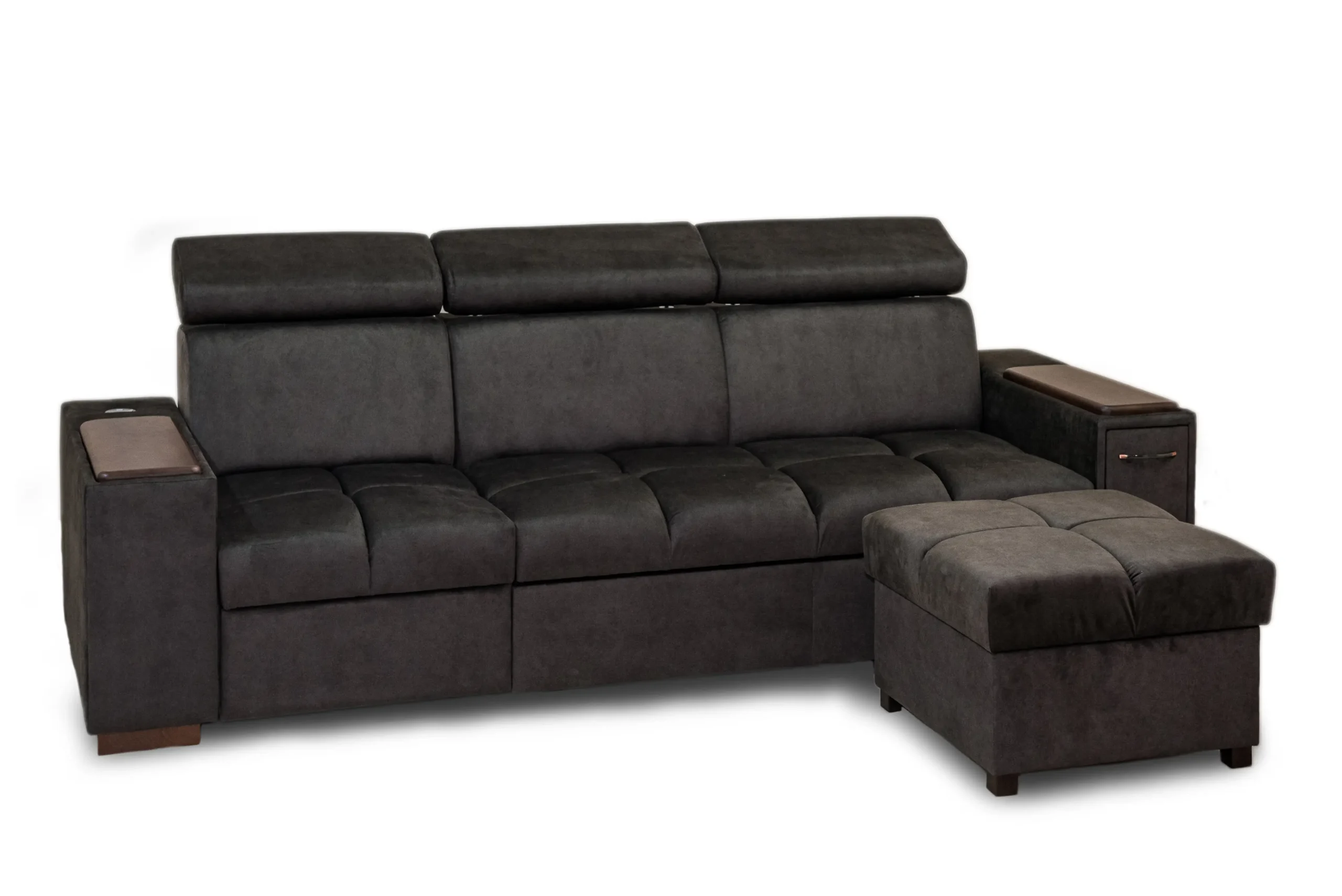 Wbudowane złącza 230V i porty USB pozwalają ładować urządzenia mobilne bez potrzeby wstawania z kanapy.