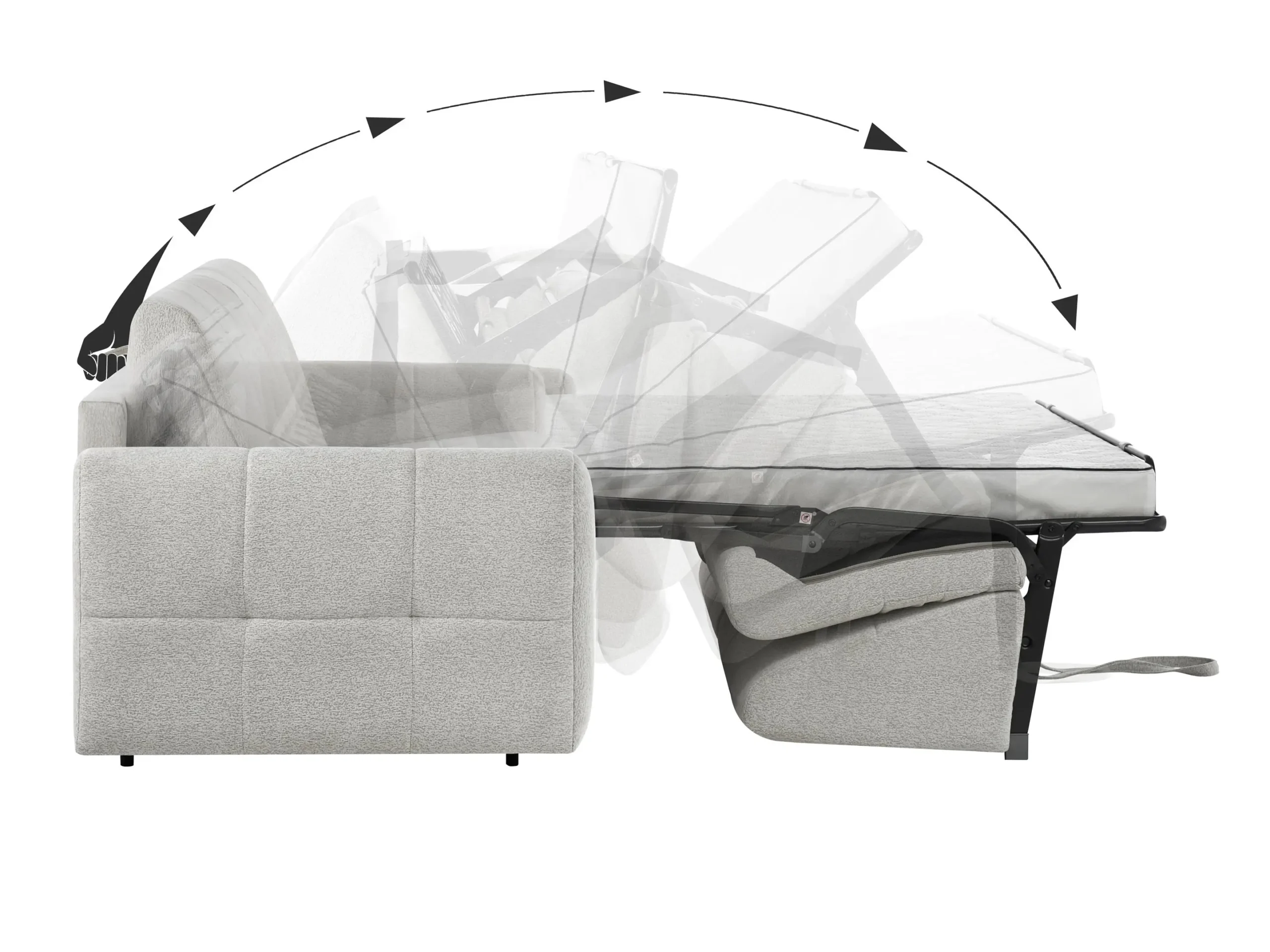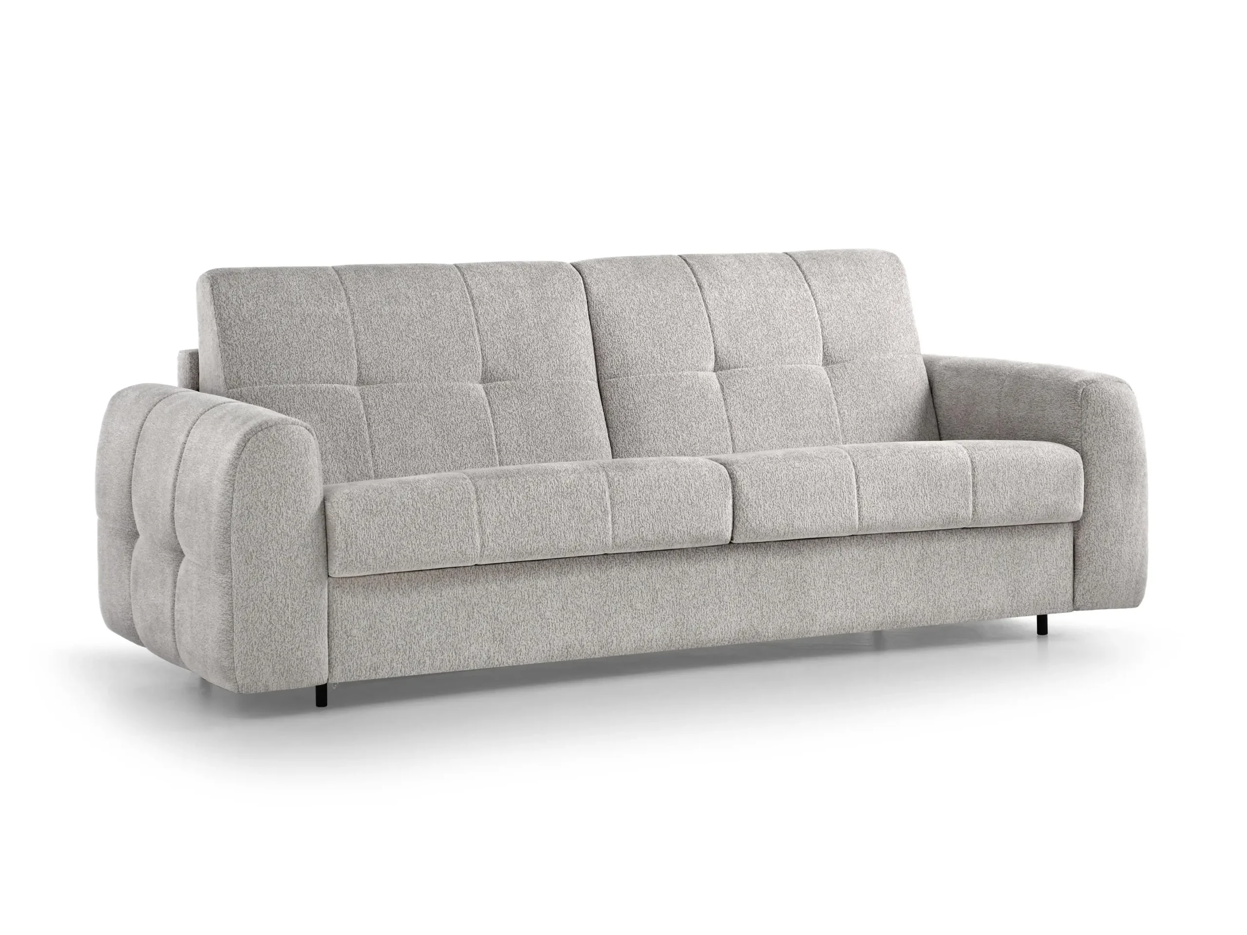 Poznaj sofę, która łączy elegancję, funkcjonalność i wygodę. Dzięki innowacyjnemu systemowi rozkładania opartemu na automacie włoskim, wystarczy jeden płynny ruch oparcia i siedziska, aby przekształcić sofę w wygodne łóżko. Materac o grubości 10 cm z pianki PU zapewnia komfortowy sen, a pokrowiec SILVER z jonami srebra tworzy naturalną powłokę antybakteryjną, dbając o higienę i świeżość.