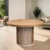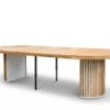 Na szczególną uwagę zasługuje efektowna podstawa stołu wykonana w formie pionowych lameli o ryflowanej strukturze. Dzięki temu stół prezentuje się niezwykle stylowo, elegancko i nowocześnie, doskonale komponując się z aranżacjami loftowymi, industrialnymi, nowoczesnymi, a także glamour czy minimalistycznymi.