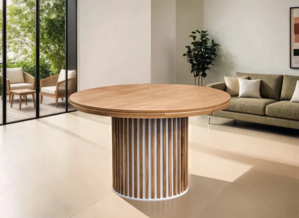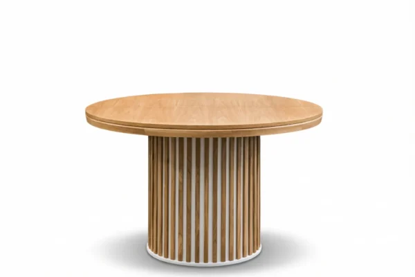 Okrągły kształt blatu to nie tylko estetyka, ale również wygoda użytkowania. Brak ostrych kantów sprawia, że stół jest bezpieczniejszy, szczególnie w domach, gdzie są dzieci. Okrągły blat sprzyja także lepszej komunikacji i budowaniu przyjaznej atmosfery – każdy siedzący przy stole widzi się nawzajem, co sprawia, że wspólne posiłki stają się jeszcze bardziej komfortowe i naturalne.