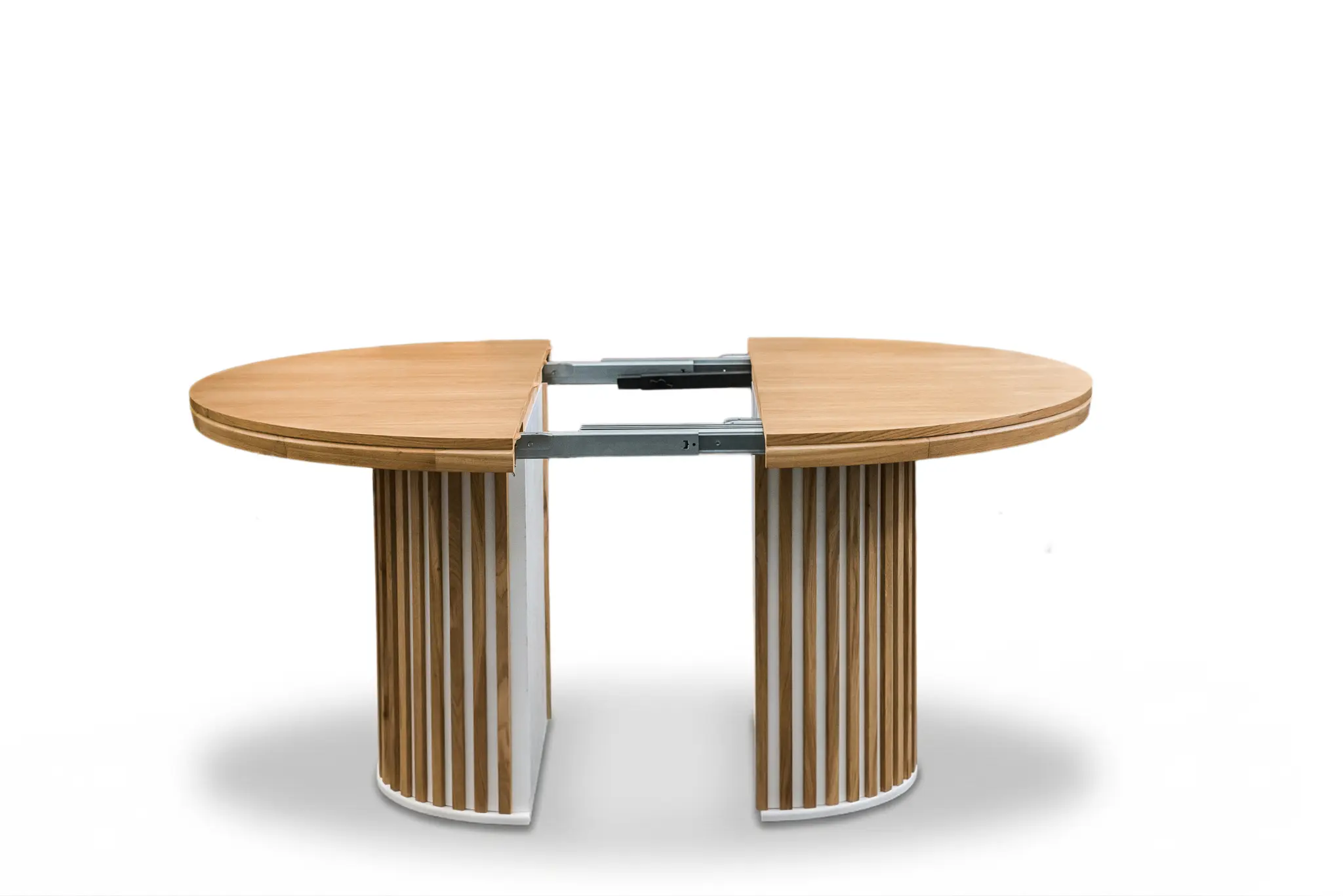Jednym z największych atutów stołu jest możliwość rozkładania. Model wyposażony został w trzy wkładki po 60 cm, które pozwalają w szybki i wygodny sposób znacząco zwiększyć powierzchnię blatu. Dzięki temu stół idealnie sprawdzi się podczas świąt, rodzinnych uroczystości, spotkań ze znajomymi czy wizyt gości. Na co dzień może pozostać w kompaktowej wersji, zajmując mniej miejsca i pozostawiając więcej swobody w pomieszczeniu.