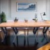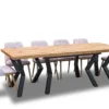 Stół oparty jest na solidnej stalowej ramie z metalową nogą malowaną proszkowo, co gwarantuje stabilność i trwałość. Łatwy w rozkładaniu, masywny i elegancki – idealnie wpisuje się w styl loftowy, industrialny i nowoczesny.
