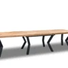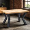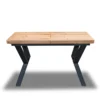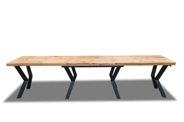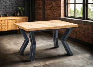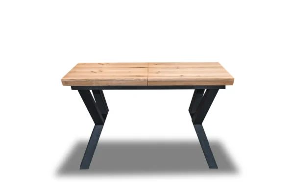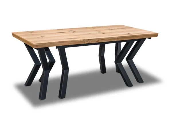 Stół oparty jest na solidnej stalowej ramie z metalową nogą malowaną proszkowo, co gwarantuje stabilność i trwałość. Łatwy w rozkładaniu, masywny i elegancki – idealnie wpisuje się w styl loftowy, industrialny i nowoczesny.