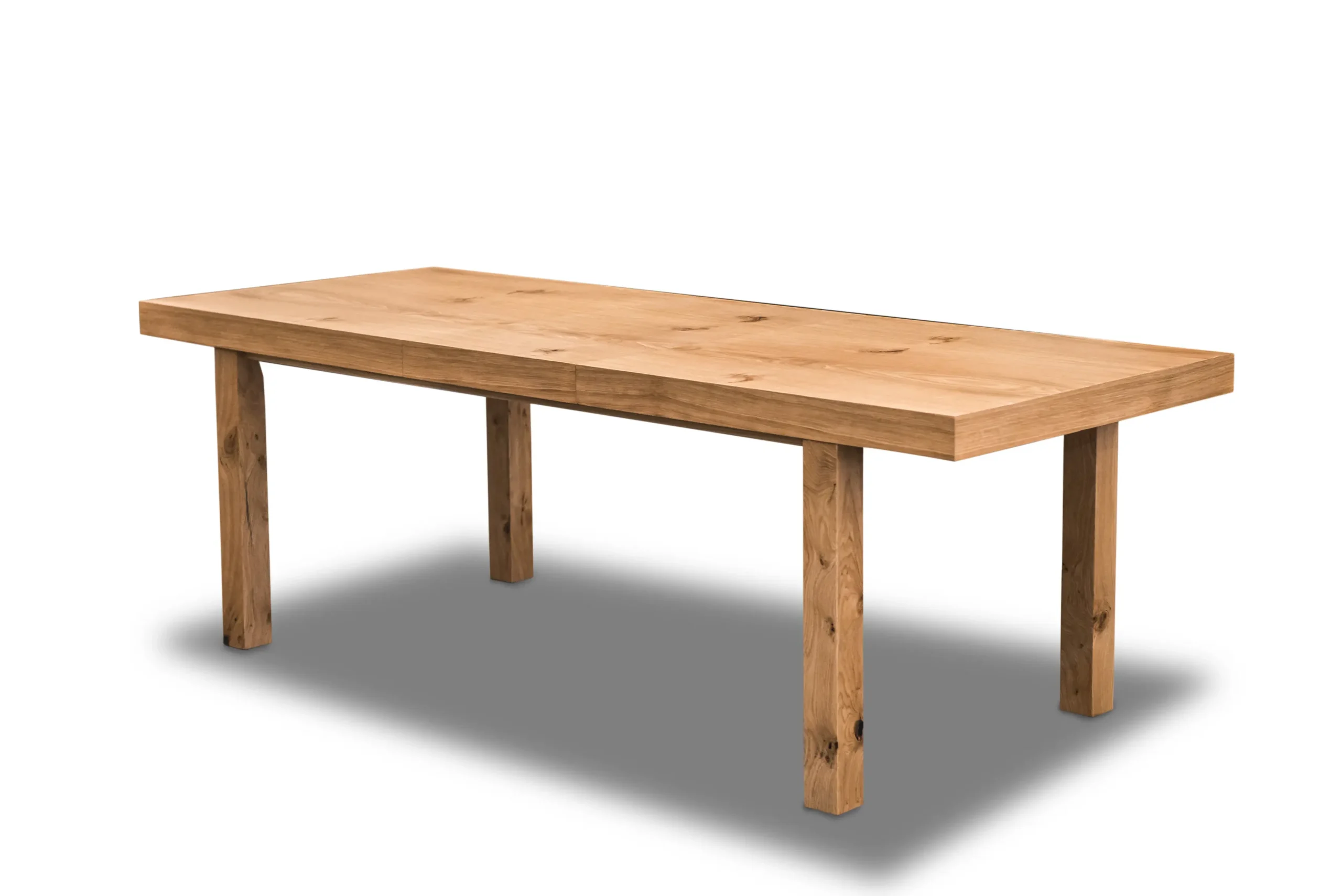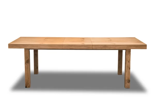 Stół Wasyl to połączenie masywnej konstrukcji i klasycznego stylu. Wyróżnia się grubym, 10-centymetrowym blatem fornirowanym naturalnym drewnem dębowym, co nadaje mu wyjątkową estetykę i trwałość. Stabilne, drewniane nogi i podstawa zapewniają długowieczność oraz komfort użytkowania. Dzięki funkcji rozkładania, stół z podstawowej długości 200 cm można powiększyć o dwie wkładki po 50 cm każda, uzyskując imponującą długość 300 cm – idealną na większe spotkania i uroczystości. Doskonały wybór do przestronnej jadalni lub salonu.