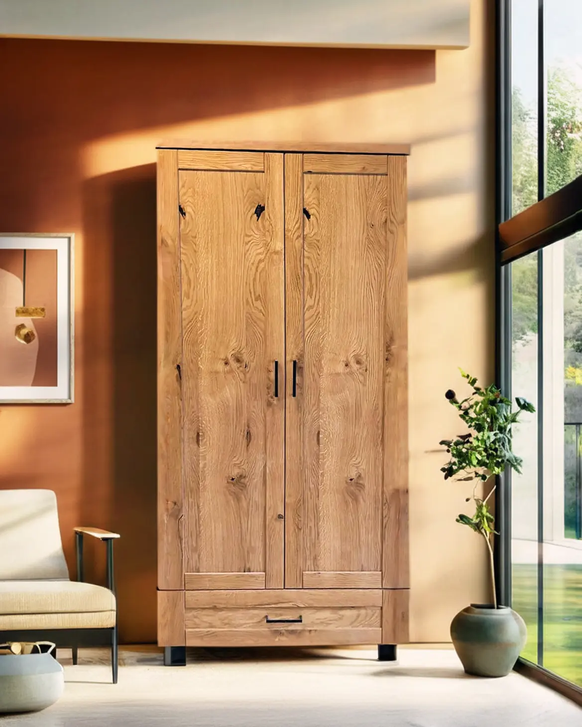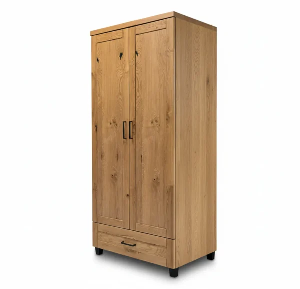 Szafa Karmel to mebel wykonany litego drewno + elementów fornirowanych, który łączy w sobie elegancję i trwałość. Jej naturalny, ciepły kolor karmelowy oraz ponadczasowy, klasyczny design sprawiają, że stanie się harmonijnym elementem każdej sypialni, pokoju gościnnego czy przedpokoju. Proste linie, starannie wykończone detale i solidna konstrukcja podkreślają wysoką jakość wykonania, dzięki czemu mebel posłuży przez wiele lat.
