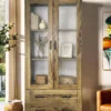 Witryna ma wymiary 90x200x45 cm, co czyni ją idealnym meblem do salonu, jadalni lub gabinetu. Dzięki połączeniu półek i przestrzeni zamykanej, umożliwia wygodne przechowywanie książek, naczyń lub dekoracji. Klasyczny design sprawia, że łatwo dopasować ją do różnych aranżacji wnętrz – od tradycyjnych po nowoczesne.